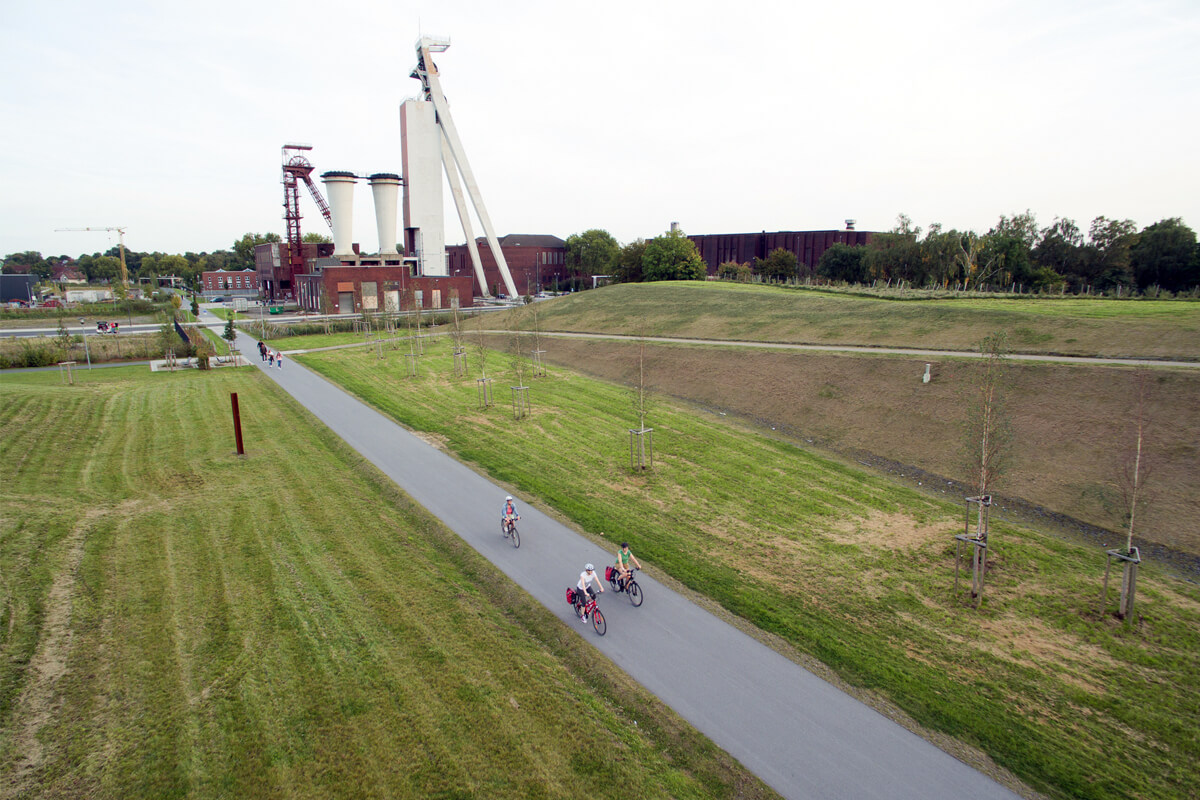 Die Jacobibahn ist die beste Verbindung, um mit dem Rad zur Halde Haniel zu gelangen. Sie ist eine der höchsten Halden, die für Radfahrende geöffnet ist und gehört zu den besten Aussichtspunkten im gesamten radrevier.ruhr. Mit dem Gasometer Oberhausen, dem Centro und der Zeche Osterfeld mit OLGA-Park liegen besonders viele Sehenswürdigkeiten an dieser ehemaligen Bahntrasse. Es gibt für Dich also links und rechts der Route genug zu erleben.