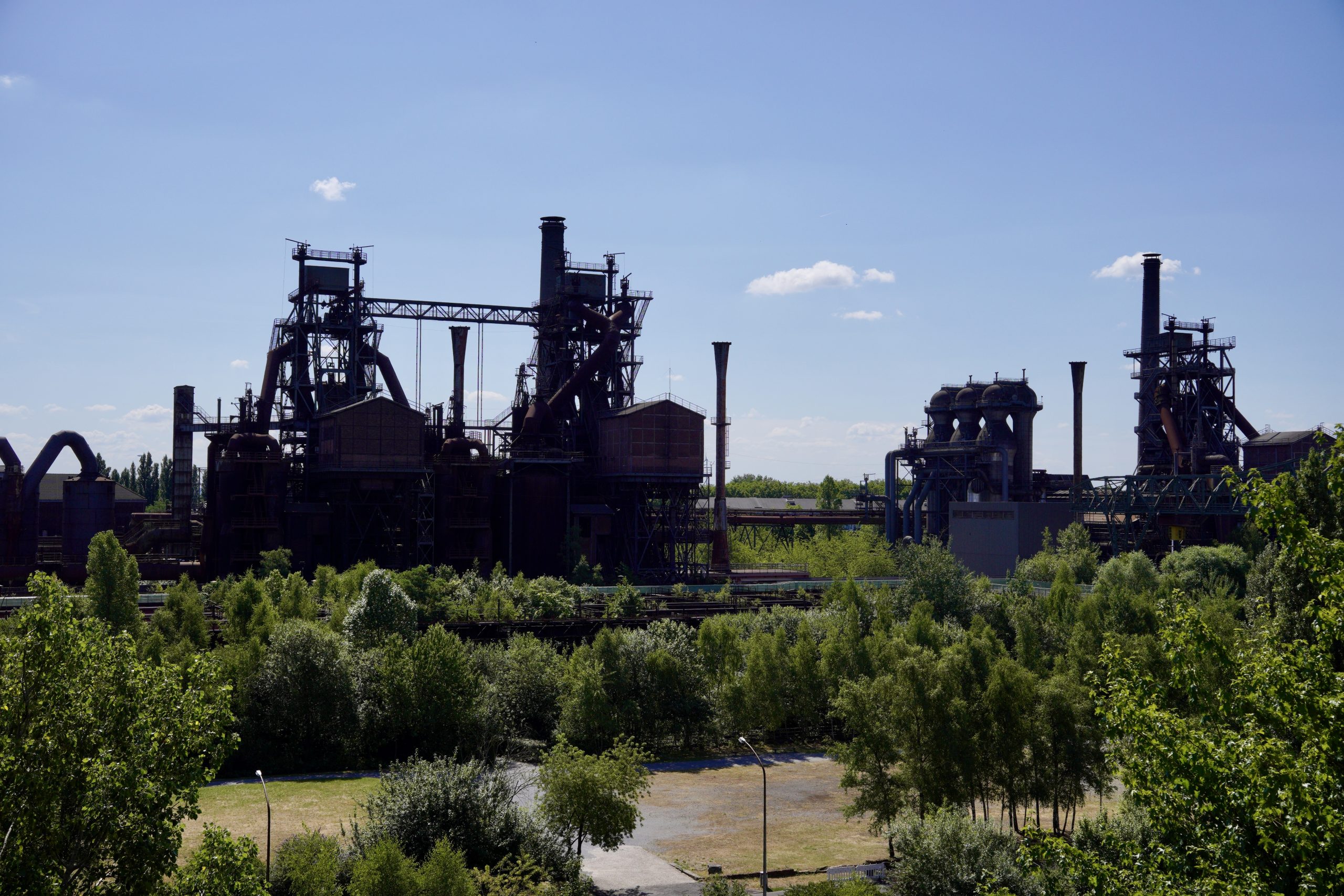 Unser erster großer Stopp ist der Landschaftspark Duisburg Nord. Ein stillgelegtes Hüttenwerk, das aussieht wie die Kulisse eines postindustriellen Abenteuerfilms. Die Natur holt sich diesen unwirklichen und von Menschenhand geschaffenen, riesigen Komplex Meter für Meter zurück. Die Pflanzen ranken sich hoch an den Stahlträgern der ehemaligen Förderbänder. Durch die rostigen Stahlgiganten zu fahren, fühlt sich an wie eine Fahrt durch eine vergessene Welt.
