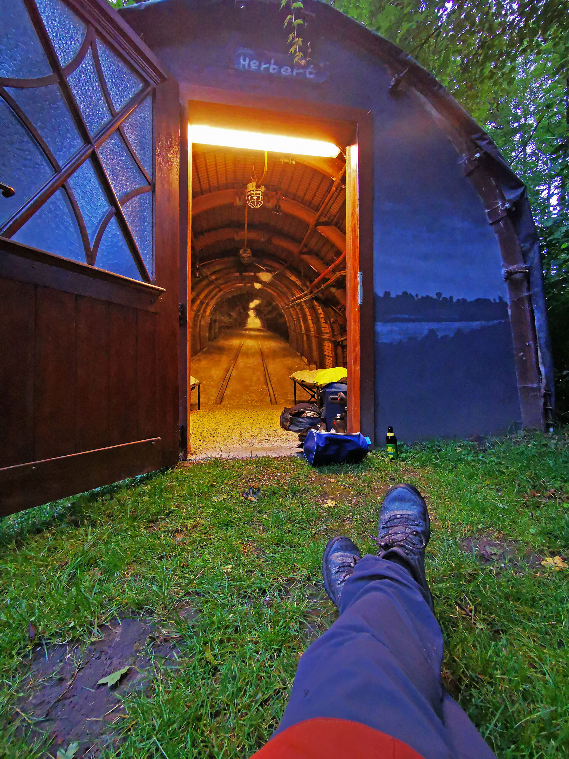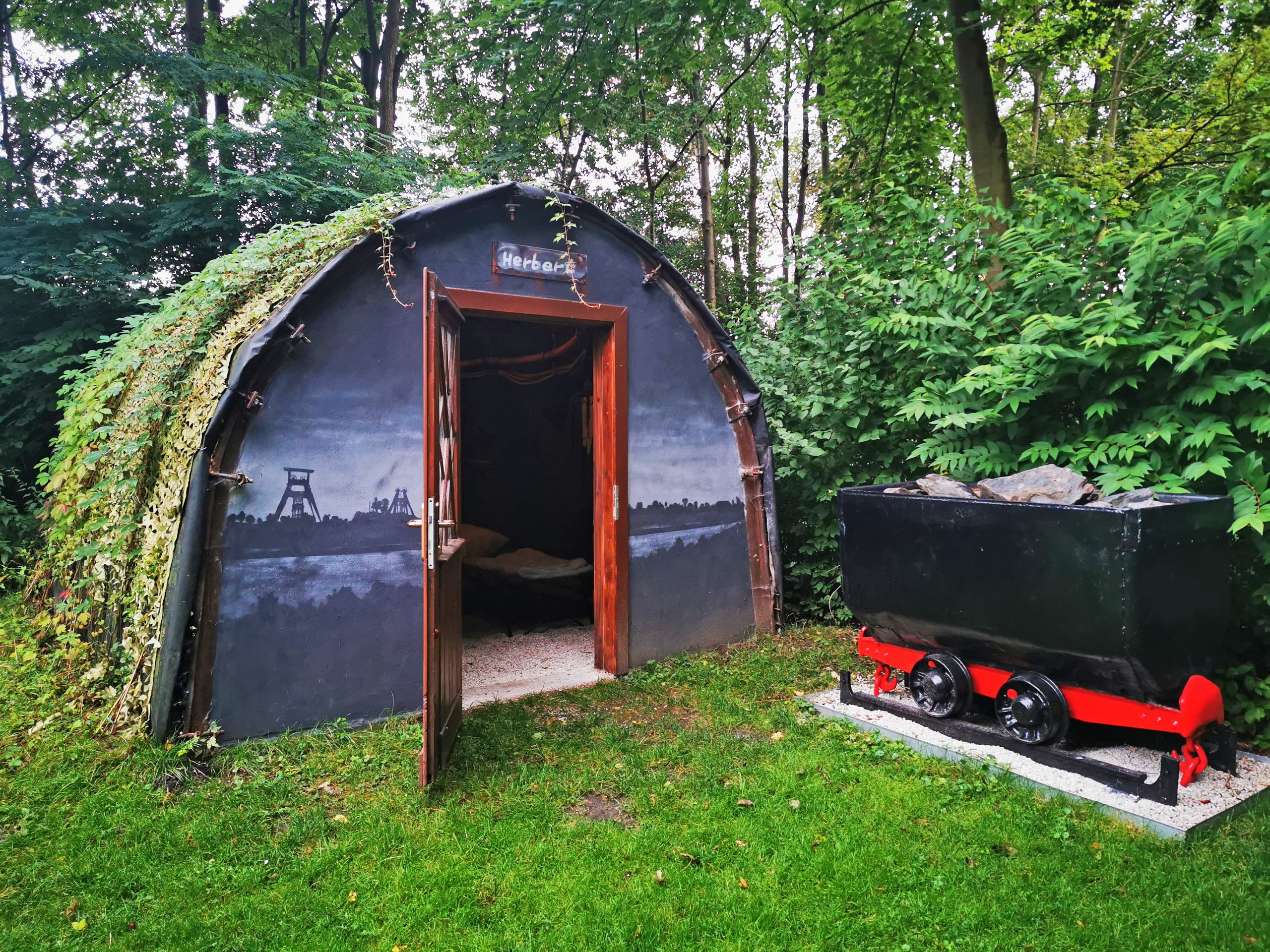 Wäre es nicht alles echt, so könnte man vielleicht den Vorwurf einer kitschigen Disneyisierung in den Raum werfen. Aber hier – und das merkt man direkt im Gespräch mit der Betreiberfamilie – geht es nicht um eine „künstliche Erlebniswelt“, sondern um ehrliche Bergbauliebe, die man in jedem Augenblick spürt. Und das Schönste ist: man riecht sie aktuell auch noch. Weil viele Gegenstände und auch das Metallgerüst aus der Grube kommen, riecht die Unterkunft einfach nicht nach Hotelzimmer oder Plastikzelt, nein, sie riecht einfach nach Bergbaustollen. Ok, ich war wohl der zweite, der dort je übernachtet hat und man muss befürchten, dass dieser Geruch nach und nach verschwinden wird aber dennoch wird die Zechenliebe und Bergbauromantik hier immer intensiv erlebbar bleiben.