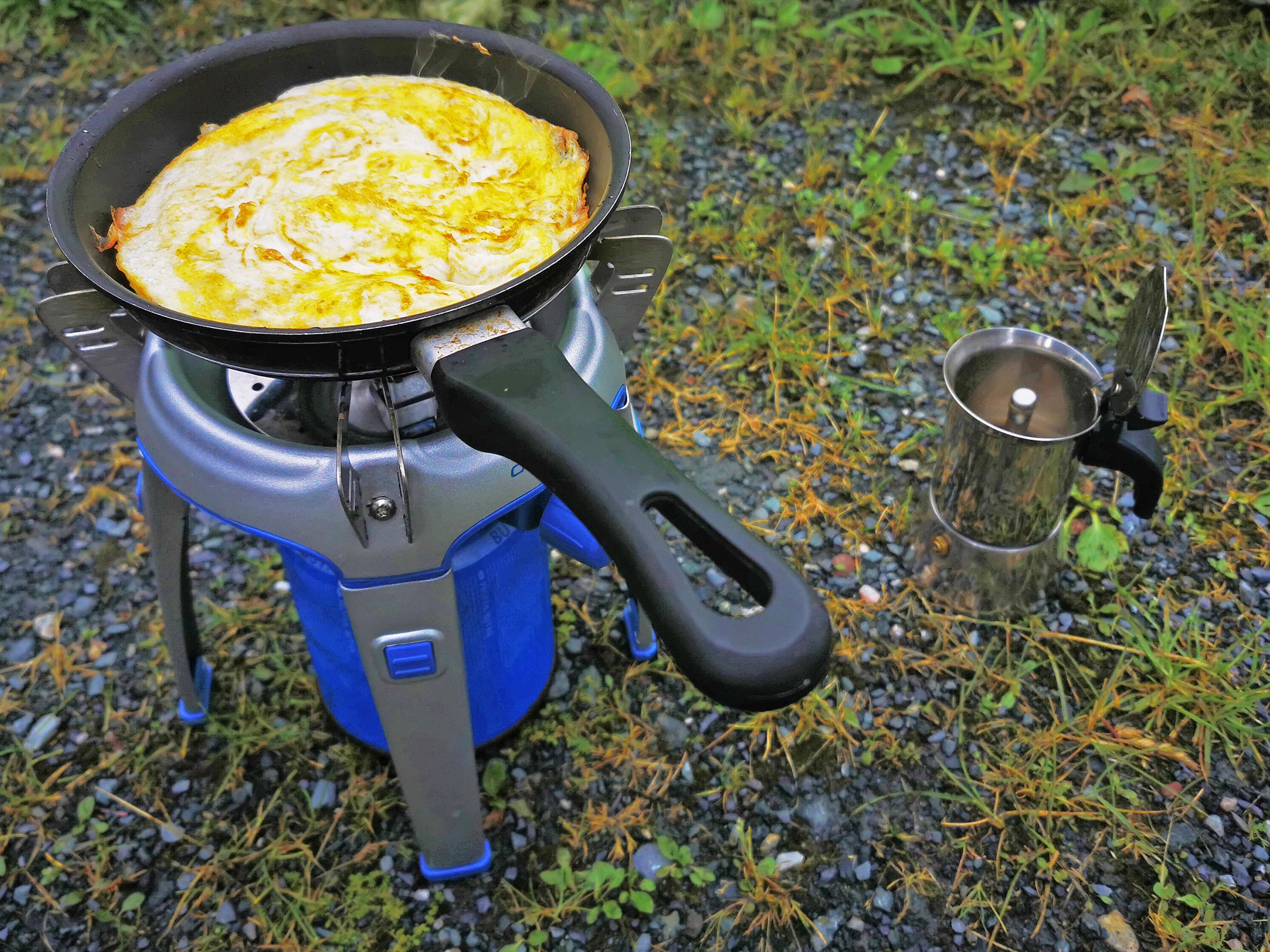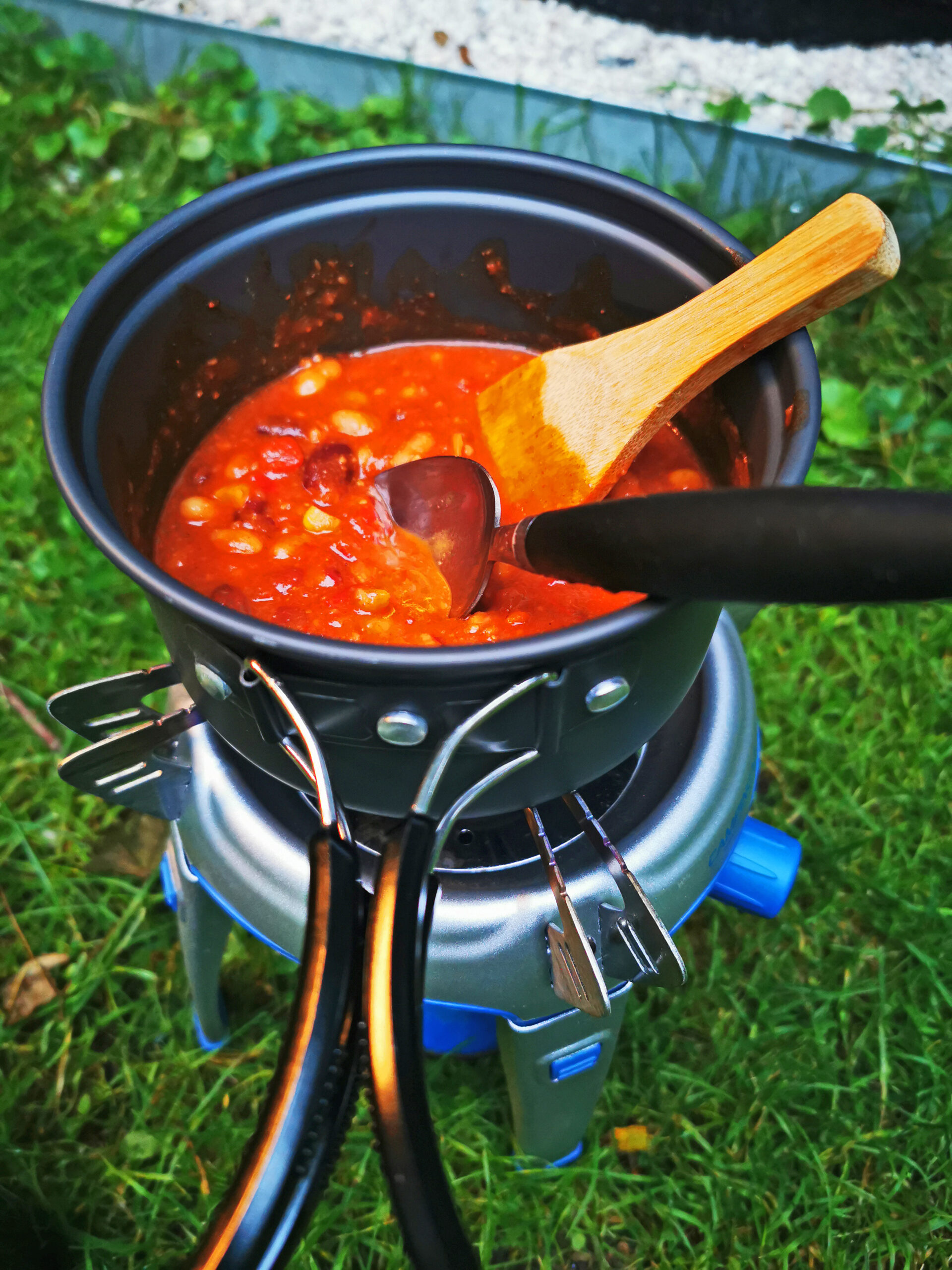 Mein Abendessen habe ich mir natürlich stilecht auf einem kleinen Gaskocher selbst zubereitet und dann im Faltstuhl genossen. Ein leckeres Radler gibt es gut gekühlt im Gästehaus.
