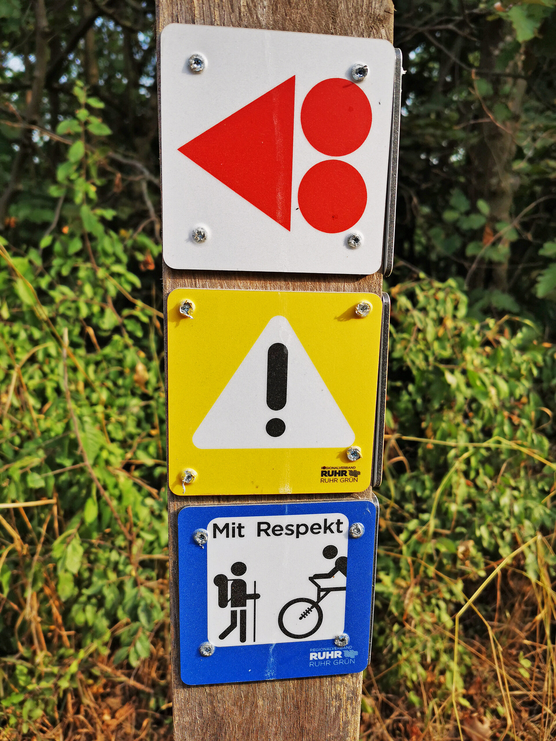 Hinweis: Pass bei der Abfahrt bitte auf, die querverlaufenden Regenrinnen sind echt tief und nicht so lustig. Kurz danach schraube ich mich auf Halde 19 hoch. Der nicht ganz so kreative Name der Halde passt zum nicht wirklich vorhandenen Panoramablick. Aber dafür steht eine alte Seilscheibe fotogen auf dem Haldentop. Auch hier bitte die Abfahrt langsam über die Regenrinnen angehen, sonst bekommt dein Flickzeug vermutlich seinen nächsten Einsatz.