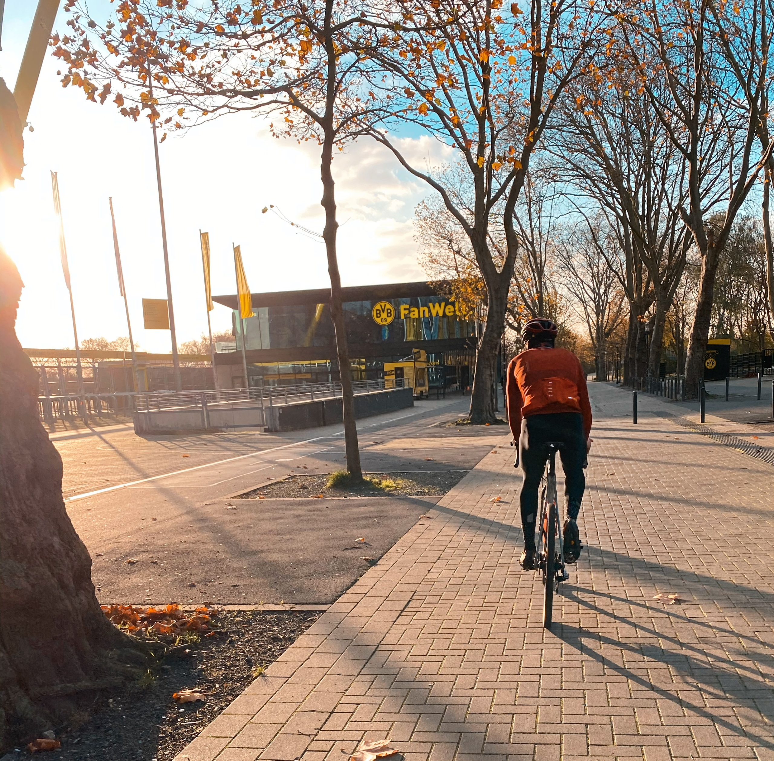 Aber jetzt genug geschlemmt – ab zurück aufs Rad und weiter geht’s. Der Rückweg zum Kemnader See geht nach erfolgreicher Stärkung leicht von der Hand. Vom Phoenix See folge ich einer ehemaligen Bahntrasse in Richtung Romberg-Park. Die Brücke bringt mich ohne Ampel über die B54 am Westfalenstadion und der BVB-Fanwelt vorbei. Über ein kurzes, aber sehr schönes Gravel-Stück fahre ich ins Uni-Viertel. Wer mag, kann sich hier den Campus der TU Dortmund ansehen. Am Wochenende ist es hier auch schön leer, sodass man die Durchfahrt genießen kann.