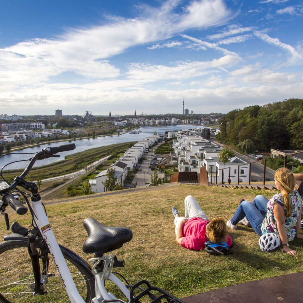 Tijdens een van de langste routes in het radrevier.ruhr-netwerk verkent u de waterwegen van het Ruhrgebied per fiets. De twee rivieren Ruhr en Emscher spelen een bijzonder belangrijke rol tijdens deze fietstocht: terwijl de Ruhr al vroeg voornamelijk voor recreatieve doeleinden werd gebruikt, was de Emscher het "werkpaard van de regio". Door zijn jarenlange gebruik als riool werd de Emscher lange tijd beschouwd als een van de vuilste rivieren in het Ruhrgebied. Gelukkig wordt hij nu weer in zijn natuurlijke staat hersteld en schittert hij in nieuwe glorie.