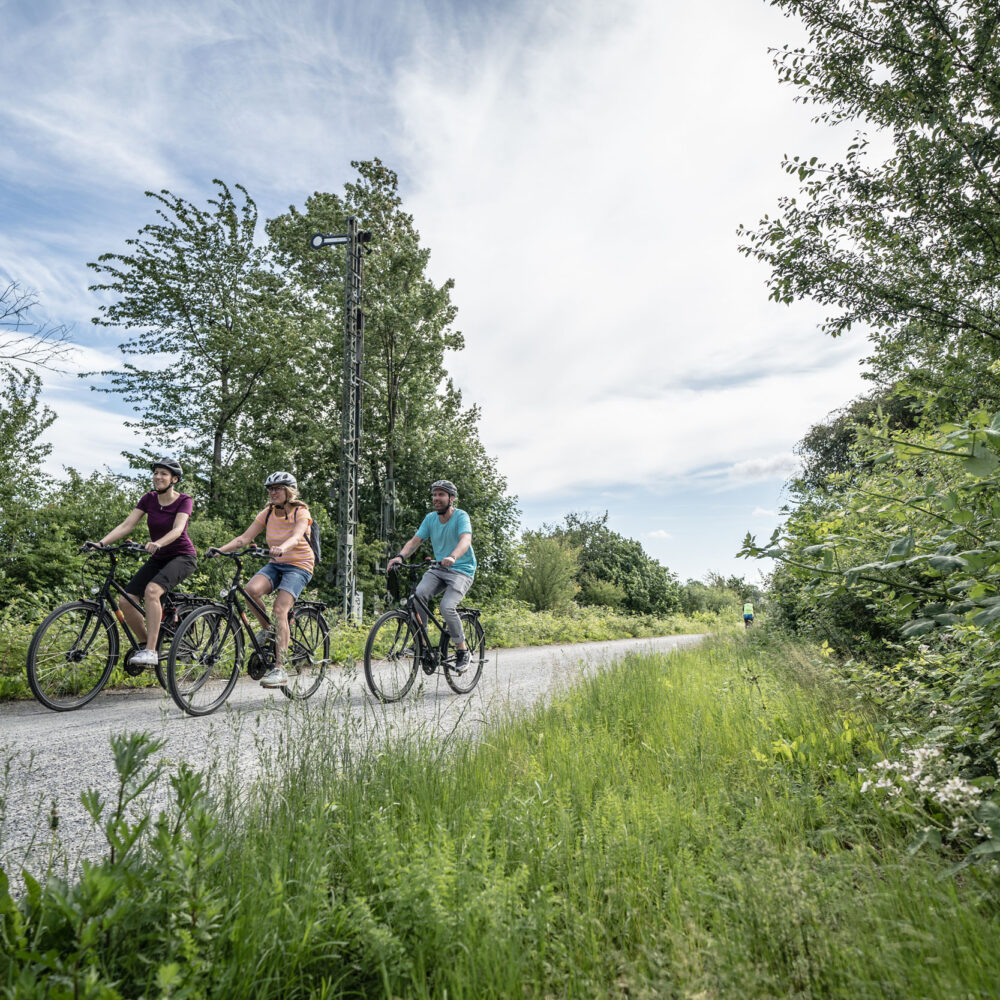De Grugaweg in Essen begint bij knooppunt 1 op de Rijnlandse Spoorweg en loopt bijna 9 kilometer via Essen-Rüttenscheid naar knooppunt 51 aan de Ruhr. De voormalige spoorlijn is een uitstekende fietsverbinding tussen Fietssnelweg Ruhr (RS 1) en de populaire Ruhrdal-fietspadOp een kruispunt vlak voor het begin na, fiets je helemaal weg van het verkeer.