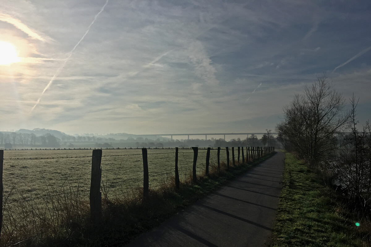 Für die Teilnehmenden der RuhrAroundChallenge wird am 26. Mai im Haus Kemnade ein dickes Frühstück aufgebaut. Hier könntest Du Dich dann stärken. Ich lass den Abzweig liegen, passiere den See und stehe bald vor der Fähre Hardenstein in Witten. Da diese im März noch im Winterschlaf ist, muss ich die nördliche Umfahrung wählen. Das Zentrum von Witten ist dann sicherlich kein Leckerbissen für Radler. Ich kämpfe mich durch den Stadtverkehr und ärgere mich über viele Baustellen. Endlich gelange ich auf den Rheinischen Esel, der mich leicht ansteigend Richtung Dortmund führt. Bahntrassen sind einfach unglaublich angenehm für Radfahrende (warum und welche Bahntrassen es im radrevier.ruhr gibt, verrate ich Euch in meinem Blogartikel), dass merke ich schon kurz nach dem Ende der Trasse, als ich mich erneut im Straßenverkehr wiederfinde. Bei einer rasanten Abfahrt auf einer Landstraße braust ein dicker SUV gefühlte 2 cm an meinem Lenker vorbei – ein Träumchen.