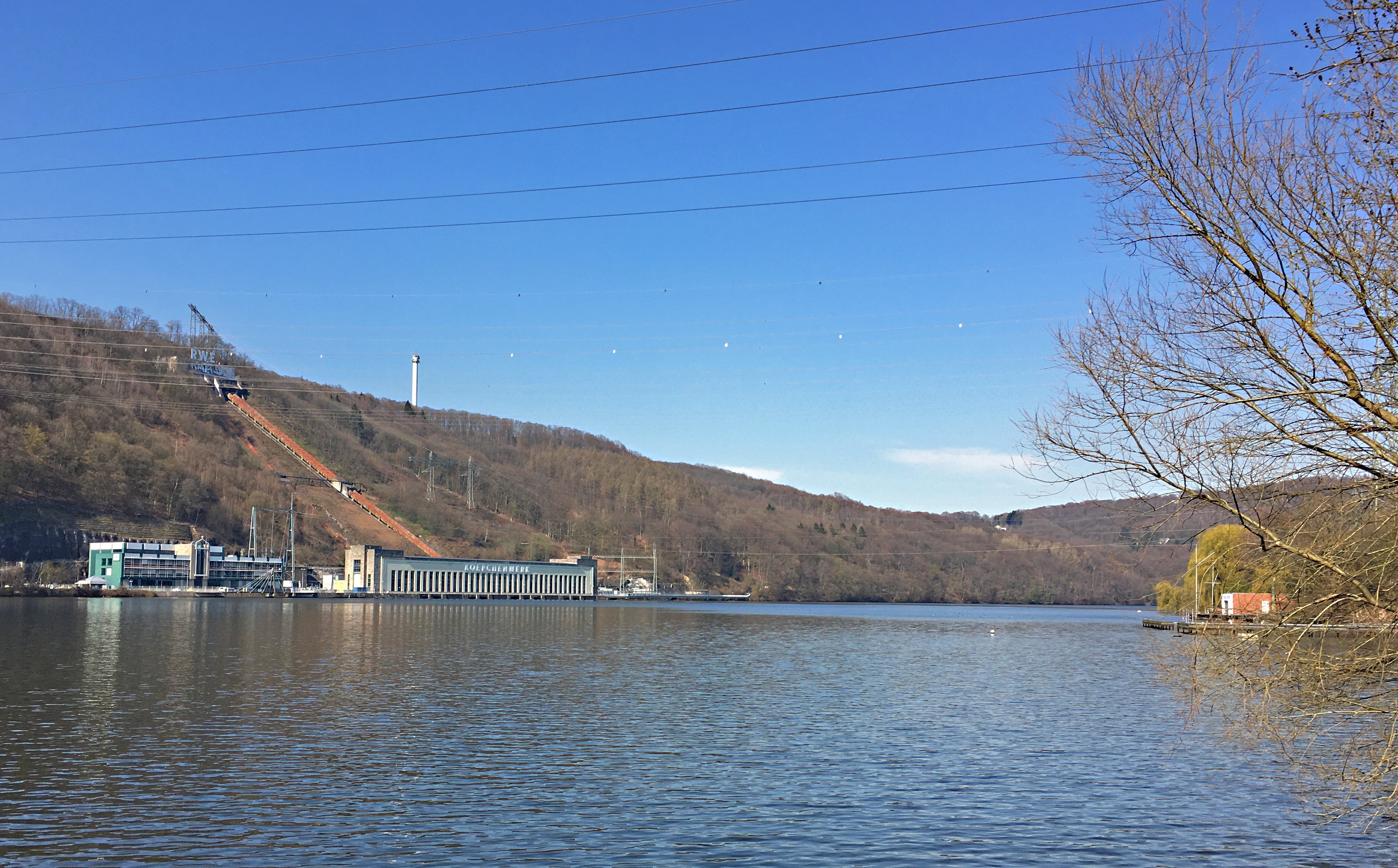 In Herdecke gelange ich wieder an die Ruhr und folge der regulären Route zunächst am Nordufer und wenig später am Hengsteysee über das Südufer. Von hier habt Ihr einen schönen Blick auf das Köpchenwerk. Vor gut 90 Jahren gehörte es zu den ersten Pumpspeicherkraftwerken in Deutschland. Ich umfahre weiter den See und verlasse am Knotenpunkt 63 den RuhrtalRadweg.
